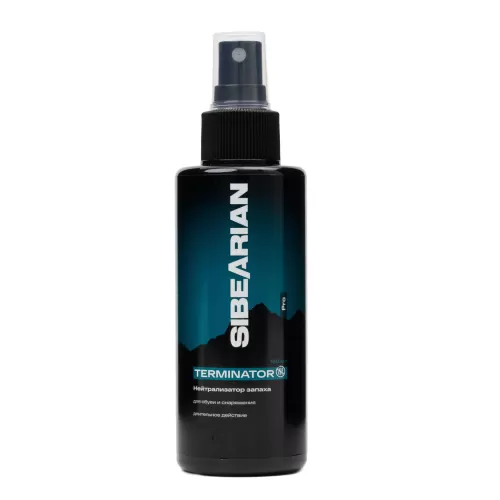 Средство SIBEARIAN PRO TERMINATOR — это нейтрализатор запахов с тройной формулой действия, специально разработанный для быстрого и эффективного устранения неприятных запахов на одежде, обуви и туристическом снаряжении.