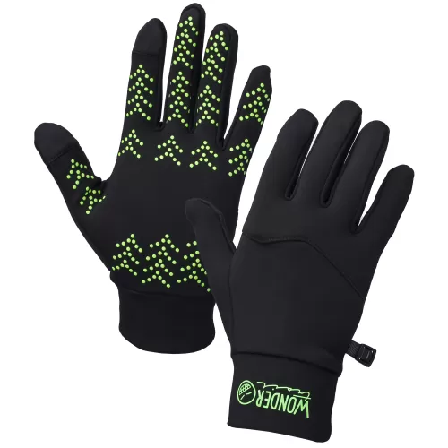 Wonder Trail Green Fir – перчатки для пробежек, различных тренировок и активного отдыха в прохладную погоду. Выполнены из эластичного материала с противоскользящим силиконовым рисунком на ладонях и технологией touch screen, позволяющей работать с сенсорным экраном телефона и часов, не снимая перчаток.